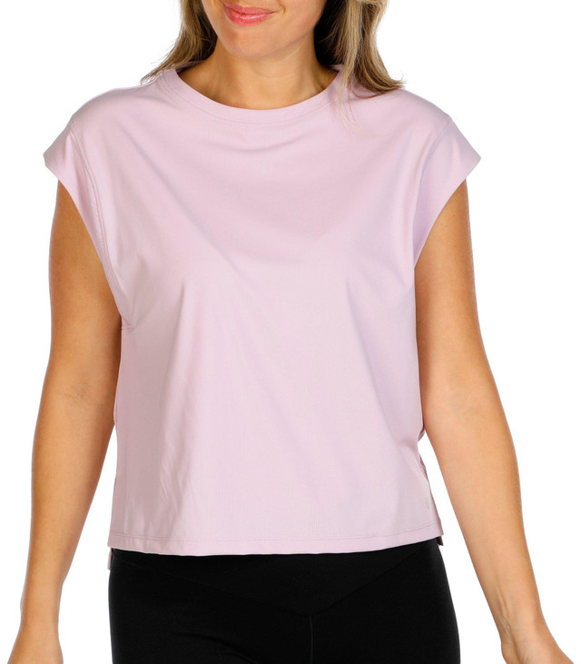 This Modern Love Cap Sleeve Tee brings effortless charm to your everyday wardrobe. Crafted in a soft, solid color fabric, it features delicate cap sleeves and a flattering silhouette thats perfect for layering or wearing solo. Fabrication is 66% polyester, 34% spandex.