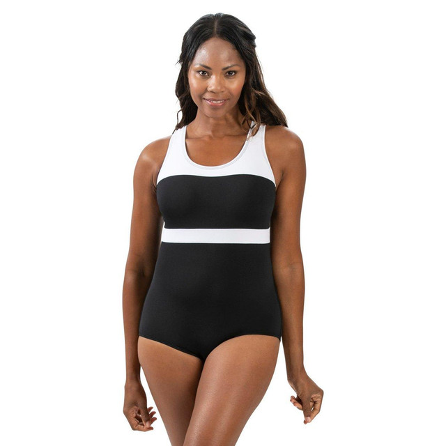 Turn heads with our chic colorblock one-piece swimsuit. Featuring a flattering scoop neckline and keyhole back, this suit offers a slimming fit and full coverage. Made from stretch fabric that is chlorine and pilling-resistant, it ensures durability and comfort. With UPF 50+ sun protection and fully lined for added support, it's perfect for pool, beach, and outdoor adventures. Stay sophisticated and stylish while enjoying time with friends and family.