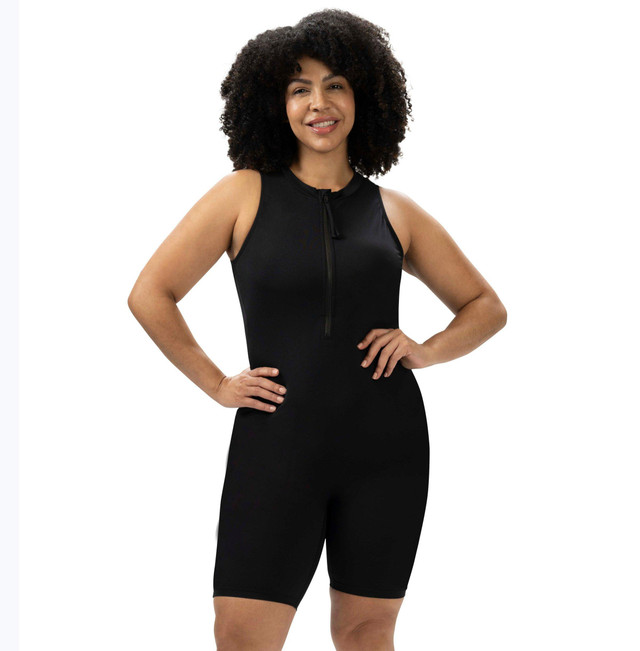 Discover the ultimate blend of comfort, coverage, and style with the Aquashape Mockneck Aquatard. Designed to keep you confident and supported during water aerobics, paddleboarding, or any aquatic activity, this swimsuit features a sleek mockneck and full-body coverage for optimal performance. Made with chlorine-resistant fabric, an adjustable zip-front, and built-in bust support, the Mockneck Aquatard flatters your figure while providing freedom of movement.