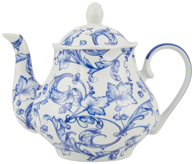 Brew in style with this elegant teapot from Ashley Grace. Featuring a delicate blue floral print, this timeless design adds charm to tea time while the sturdy ceramic build ensures lasting use. A beautiful addition to any kitchen or teaware collection. Measures approximately 6.5 in x 9 in.