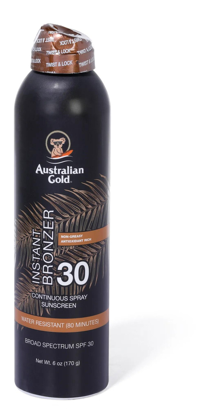 Get your tan on this beach season with this SPF 30 instant bronzer spray gel sunscreen! Features a water-resistant design and is non-greasy and cruelty free. 6 FL OZ.