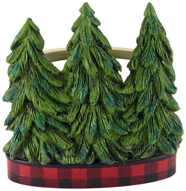 The Avanti Snowmen Gathering Toothbrush Holder features a trio of pine trees with a red and black plaid base. Beautifully detailed in hand-painted resin. Measures: 4.88''H x 2.76''W x 4.72''L.