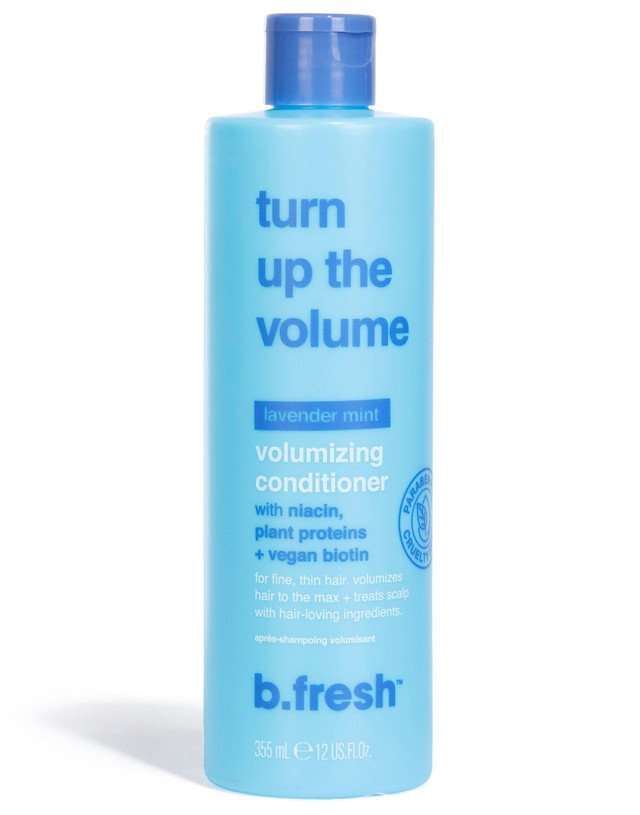 Add weightless lift and softness with Turn Up The Volume Conditioner, featuring calming lavender and energizing mint. Detangles and hydrates without weighing hair down, making it ideal for fine or limp strands. Leaves hair feeling refreshed and full of movement. Perfect for everyday use, whether you're heading to brunch or a busy day at work. Contains 12 fl oz.
