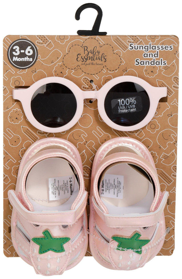 This adorable 2-piece baby girls sandals set includes velcro-strap sandals with a cute strawberry design and matching sunglasses offering 100% UVA/UVB protection. Perfect for sunny day adventures in style and comfort!
