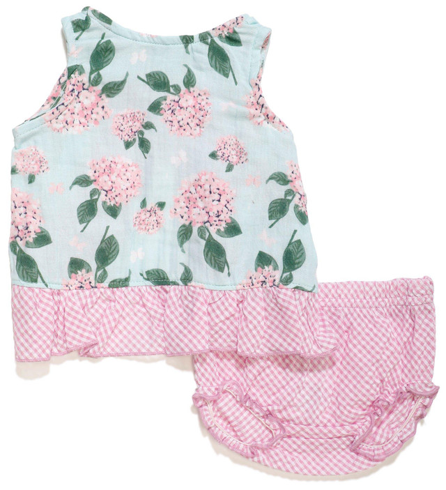 This adorable diaper cover set features floral and pink checkered bloomers paired with a stylish open-back top. Made from soft, breathable cotton, it's perfect for warm days and playful outings. The sweet patterns and breezy design offer both comfort and charm, making it a must-have for your little one's wardrobe.