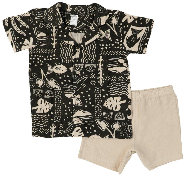 Breezy style meets all-day comfort in this 2-piece set, featuring a soft cotton gauze short-sleeve button-up shirt and matching elastic waist shorts. Lightweight and breathable, it's perfect for sunny adventures or laid-back lounging. The relaxed fit and gentle fabric keep him cool and comfy, while the classic design adds a touch of charm to any summer day.