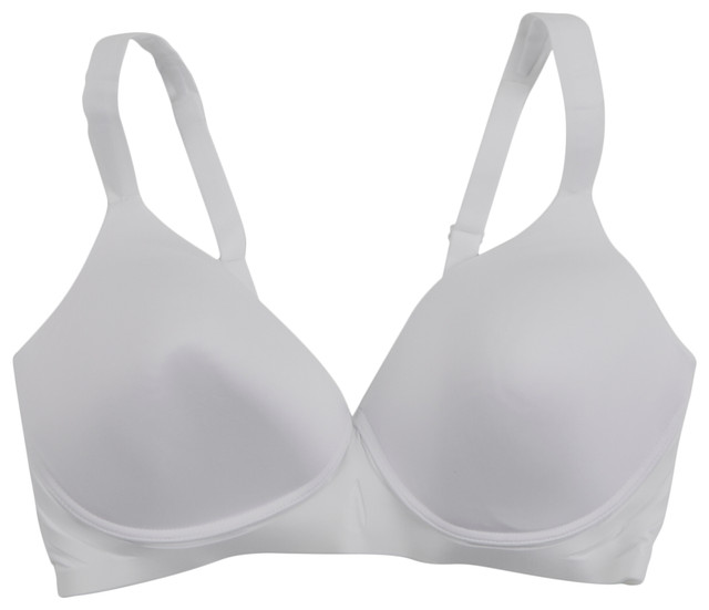 Experience all day comfort with this wirefree bra designed for flexible support and a smooth fit. Made from 74% nylon and 26% spandex, it features soft touch fabric that feels gentle against the skin. Flexible support bands provide lift without a wire while side and back smoothing create a sleek silhouette. Comfort cushion straps help relieve shoulder pressure. Machine wash and tumble dry. Do not use fabric softener.