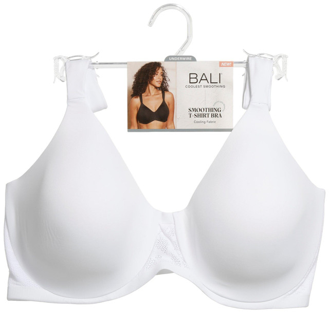 This Coolest Smoothing Underwire T-Shirt Bra features extra wide back and sides to provide superb back and side smoothing, ultra-flexible foam cups, full coverage, and back hook and eye closure for adjustability and easy on and off. Convenient, fully adjustable straps convert in the front and allow you to wear this either traditional or crisscross for more wardrobe options. Fabrication 73% Nylon, 27% Spandex. Style 4580.