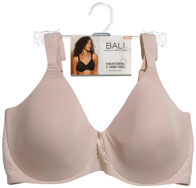 This Coolest Smoothing Underwire T-Shirt Bra features extra wide back and sides to provide superb back and side smoothing, ultra-flexible foam cups, full coverage, and back hook and eye closure for adjustability and easy on and off. Convenient, fully adjustable straps convert in the front and allow you to wear this either traditional or crisscross for more wardrobe options. Fabrication 73% Nylon, 27% Spandex. Style 4580.