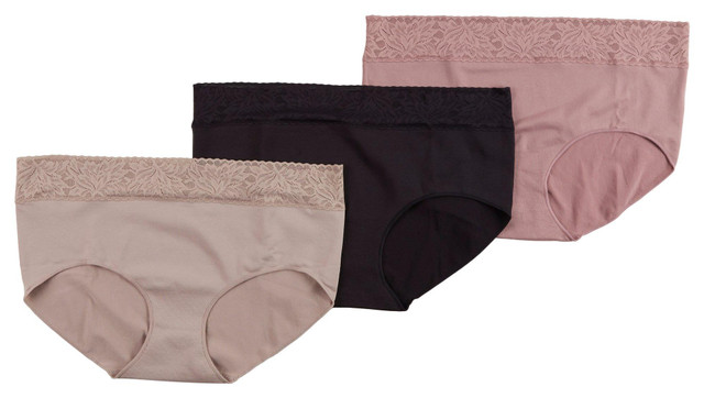 Experience everyday comfort with a touch of style. This 3-pack of seamless brief panties features soft lace trim and a smooth design that moves with you. Made for a barely-there feel, they offer full coverage without visible lines. Ideal for daily wear, these panties combine comfort and elegance in one essential set.