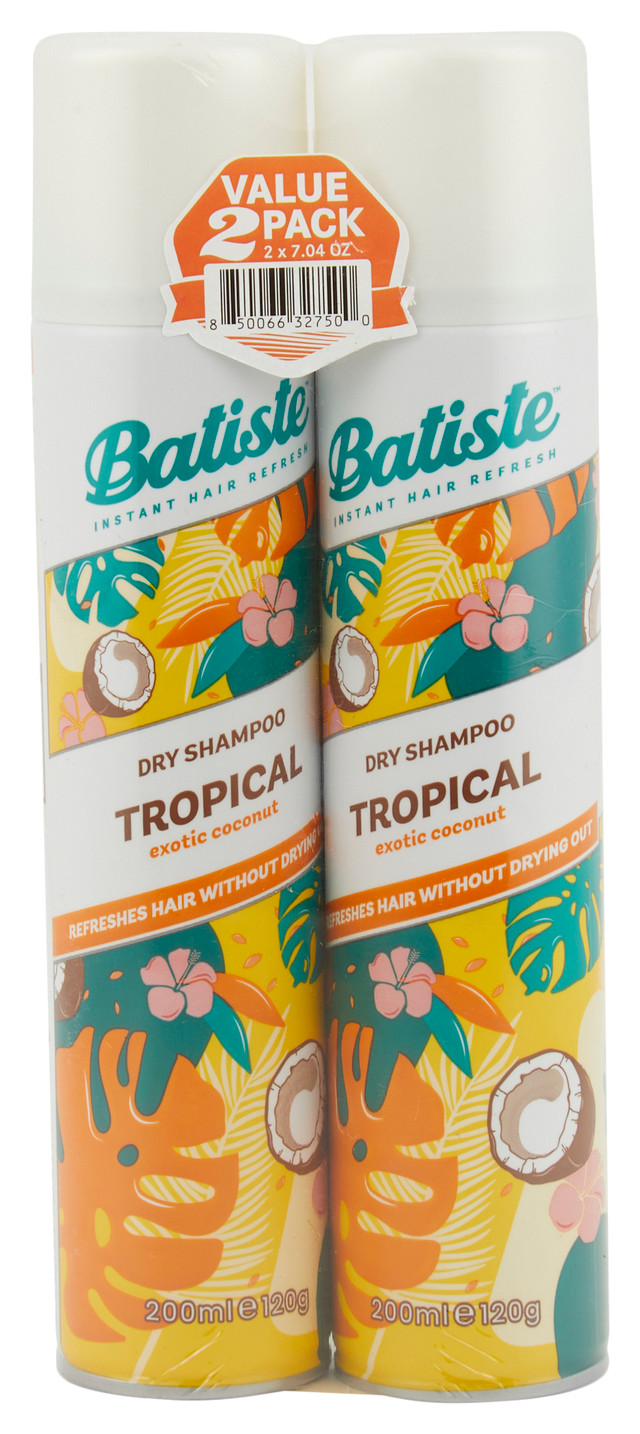 Batiste Tropical Dry Shampoo is the perfect quick fix for great looking hair, even between washes. Includes a coconut and exotic tropical scent. 2 Pack :6.73 fl oz. each
