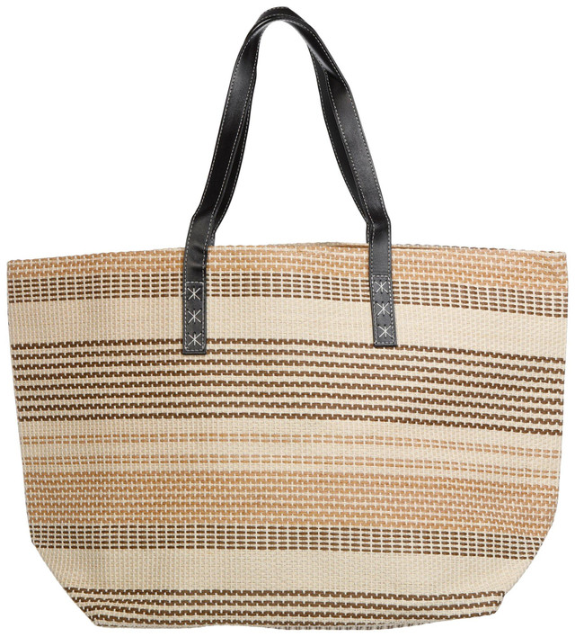 Make a statement on your next getaway with the Yacht Club Oversized Weekender Beach Tote Bag. Crafted from multicolored woven straw, it features two leather-like shoulder straps and a spacious, fully lined interior with a magnetic snap closure. Ideal for beach trips, weekend travel, or casual summer outings. Measures approximately 23 in x 22 in x 8 in.