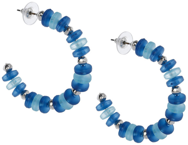 Add a playful twist to classic hoops with these 2 inch drop earrings, featuring silver and blue beads for a fresh pop of color. The sleek hoop design pairs effortlessly with the secure post backing, making them perfect for all-day wear. A versatile accessory that brings color and shine to both casual and dressy looks.
