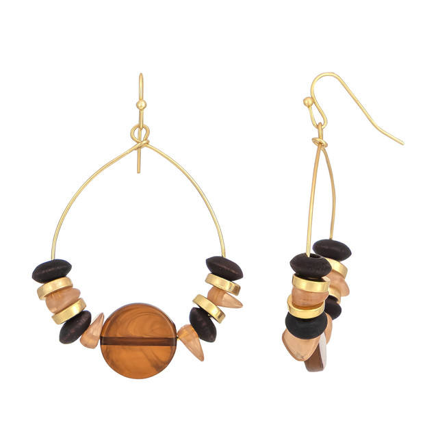 Add a playful twist to your look with the Beaded Hoop Earrings. Featuring gold tone hardware and a fishhook backing, these earrings offer easy wear and vibrant style for any occasion.