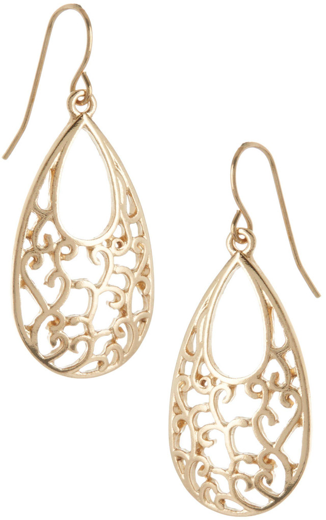 Add a touch of timeless elegance to your jewelry collection with these Filigree Teardrop Dangle Earrings. Featuring intricately crafted metalwork in a delicate teardrop silhouette, these earrings blend vintage charm with modern sophistication. Lightweight and versatile, theyre perfect for elevating everyday outfits or adding a graceful finish to eveningwear.