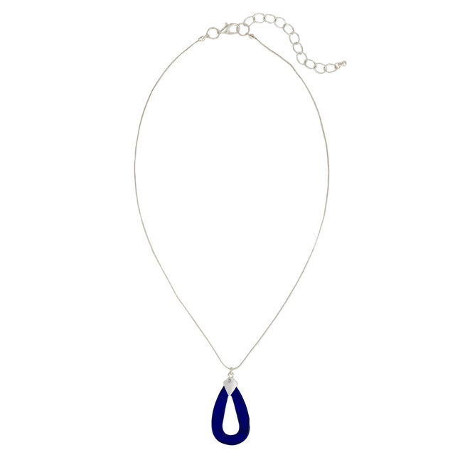 Simple yet striking, this silver-toned necklace features a bold blue teardrop pendant on a delicate chain. Perfect for adding a pop of color to any outfit, from casual to dressy.