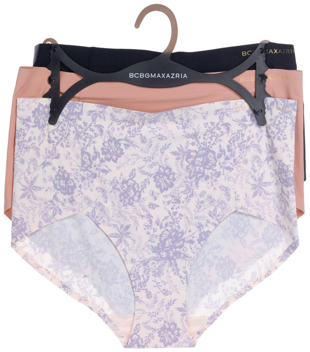 Upgrade your underwear collection with the BGBGMaxazria No-Show Bonded Laser Cut 3-Pack Panty, designed for a sleek fit and ultimate comfort. 90% Nylon, 10% Spandex