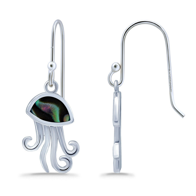 Make a statement with these Silver Boxed Jellyfish Abalone Earrings. Featuring fluid jellyfish designs and iridescent abalone inlays, these ocean-inspired earrings offer a unique blend of elegance and whimsy. A perfect gift for sea life lovers or a bold coastal-chic look.