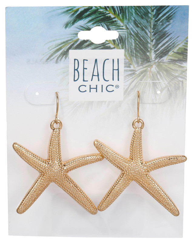 This pair of womens earrings features a gold tone starfish design with a fishhook back for easy wear. The delicate dangle style adds a touch of coastal charm and elegance to any outfit. Lightweight and stylish, this accessory brings a beach inspired look that is perfect for both casual and dressy occasions.