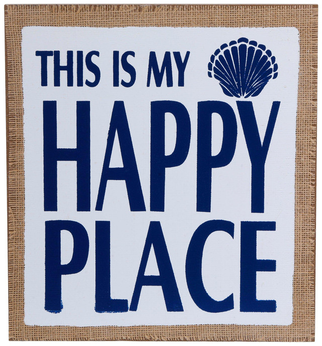 Transform any room into a sanctuary with this charming This is My Happy Place wall sign. Crafted from high-quality materials, this sign features a warm, inviting design that instantly uplifts your space. The elegant lettering and burlap features add a touch of rustic charm. Measures approximately 11 in x 11 in x .5 in.