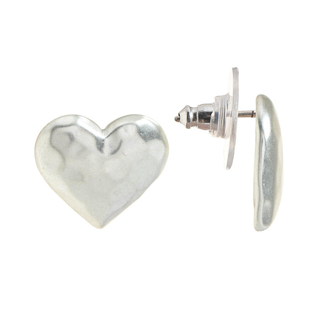 Sweet and timeless, these silver-tone heart stud earrings feature a softly hammered finish for a subtle shine. Perfect for everyday wear or gifting to someone special.