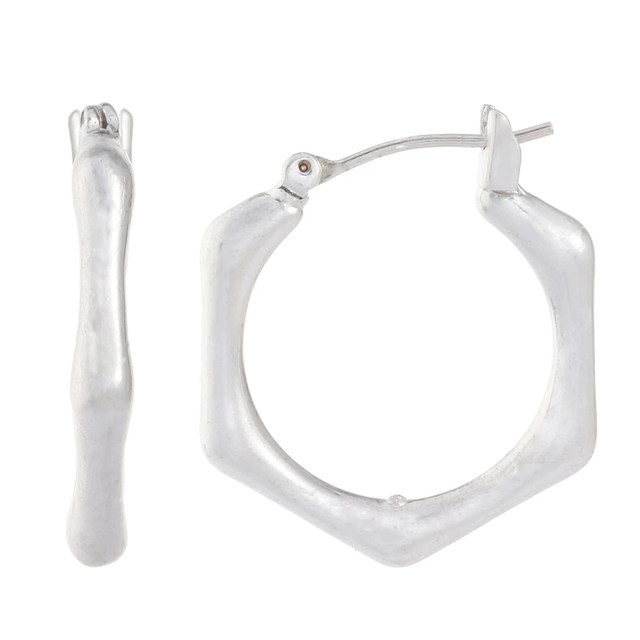 Make a bold statement with the Silver Bamboo Hoop Earrings. Designed to resemble the natural texture of bamboo, these polished silver hoops bring a unique twist to a classic accessory.