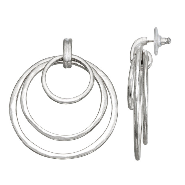 The Bella Uno Silver Tone Triple Hoop Earrings showcase a modern and sleek design with three interlocking hoops in a polished silver-tone finish. These elegant earrings offer a bold yet refined look, perfect for adding a touch of sophistication to any ensemble. Lightweight and stylish, they are ideal for both casual and formal occasions, making them a versatile addition to your jewelry collection.