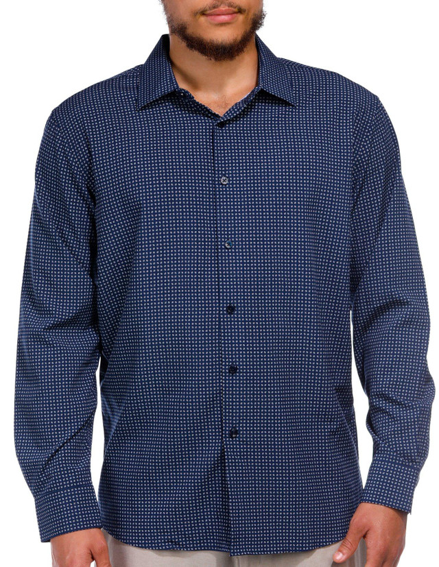 Introducing this Long Sleeve Shirt, a stylish addition to your wardrobe. Featuring a buttoned front and a striking geometric print, this shirt combines fashion and functionality. Perfect for both casual and semi-formal occasions, its unique design ensures you stand out while staying comfortable. Fabrication is 95% polyester and 5% spandex.