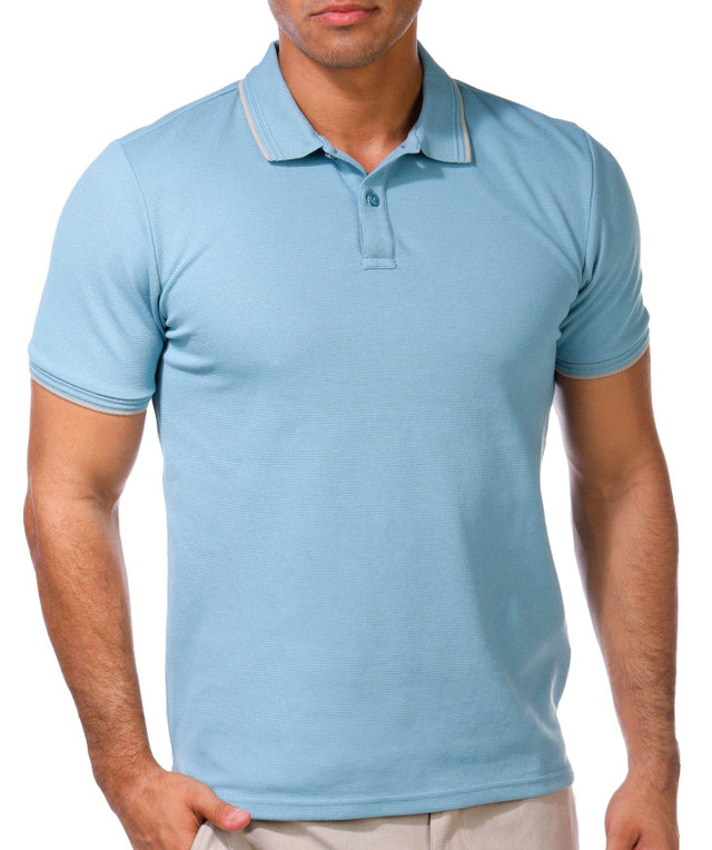 Mens Short Sleeve Ottoman Textured Polo features a solid color with a classic polo neckline and short sleeves. The all over ribbed design adds subtle texture for a refined look that works on the course or around town. Fabrication 59% cotton, 39% polyester, 2% spandex.