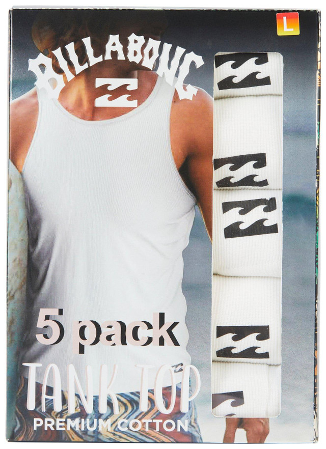 Stay cool and comfortable with this 5 pack of Billabong men's premium cotton tank tops. Designed for everyday wear, each tank offers a soft feel and classic fit perfect for layering or wearing solo.