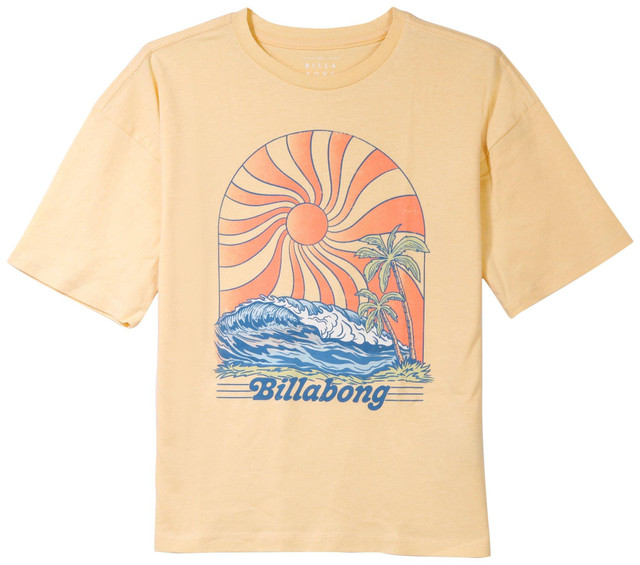 Slip into this comfy knit tee featuring a soft buttermilk hue with a sunset design. The lived-in piece dye with garment wash gives it a relaxed feel, while the fit and classic crew neck create an effortless, true comfy tee vibe. Perfect for everyday wear with a blend of comfort and style.