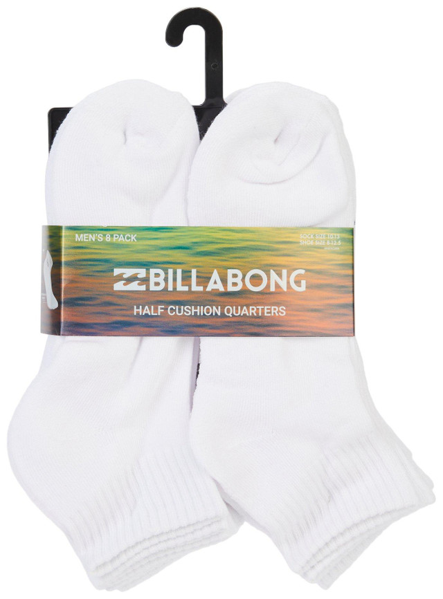 He was tired of socks that slid down, bunched up, or left his feet soaked halfway through the day. Then he found the Billabong 8-pack quarter socks. Half cushioned for comfort, built with exclusive elastic that actually holds, and crafted from a spandex-poly blend that breathes and moves. No more swampy feet. No more adjusting. Just socks that work as hard as he doeswhether he's grinding at the gym or chasing the weekend.