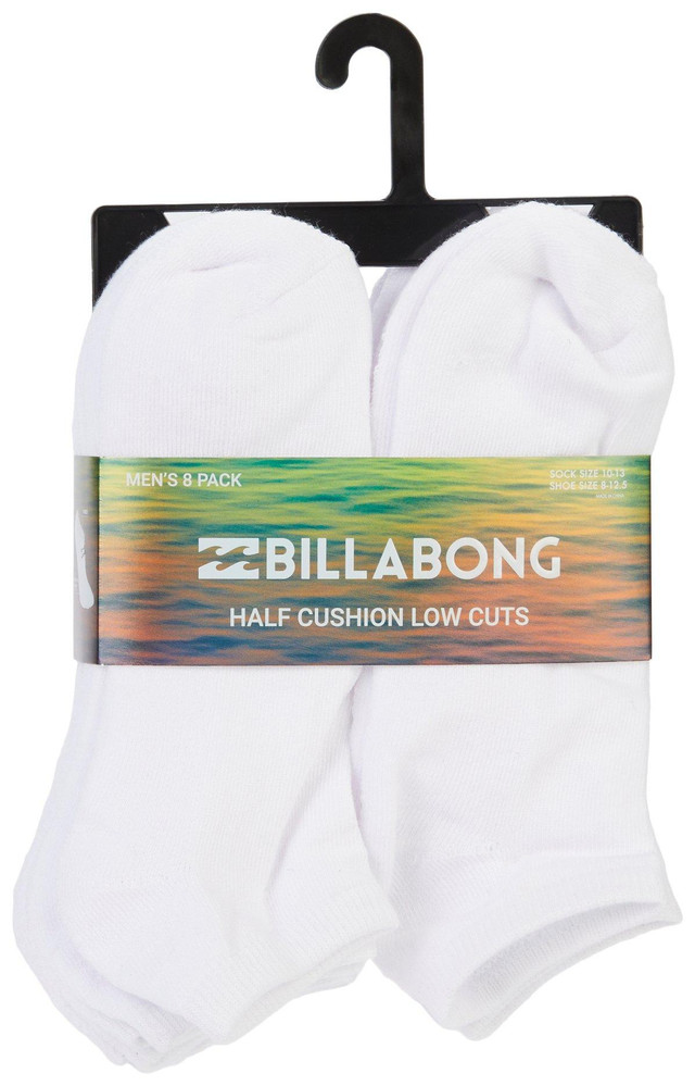 No more slipping socks. The Billabong Half Cushion Low Cut 8-Pack fits shoe sizes 812.5 with a 98% polyester, 2% spandex blend for stretch and breathability. Half cushion adds comfort without bulk. Low cut stays hidden and secure all day. Machine washable, durable, and built to performeight pairs that never quit.