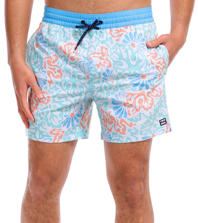 Keep the vibes high in Billabong's Good Times Layback Elastic Waist Shorts, crafted of our Recycler 4-way stretch fabric that's made from partially recycled PET plastic bottles. Coming in a range of made-for-fun prints, these short-length hybrid boardshorts are topped with Micro Repel waterproofing for quick-drying comfort and a lightweight feel. Featured here in the Blue colorway.
