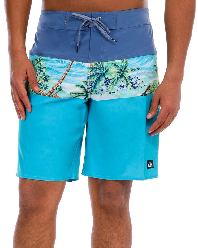 These boardshorts offer the perfect combination of comfort and performance locked in one solid package. Featuring a modern fit with drawcord and front self-adhesive closure, mid length, and a self-adhesive closure back pocket for safe storage. The outseam measures approximately 19 inches. Fabrication is 72% recycled polyester, 20% cotton, 8% elastane.