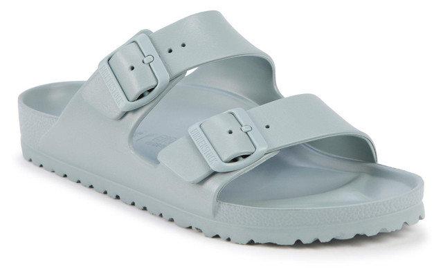 The legendary two-strap design from BIRKENSTOCK - the Arizona. Modeled on the cork original, this sandal is made from ultra lightweight and highly flexible EVA. These sandals are shock absorbing, waterproof, and skin-friendly. Wear them at the beach, in the garden, or around the gym and after workouts. It's the perfect addition to your classic BIRKENSTOCK sandals.