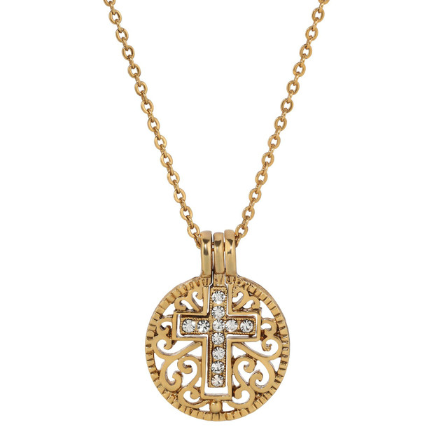 Embrace inspiration with this birthstone crystal cross necklace. Featuring a colorful crystal cross set in an intricate gold tone filigree setting, this delicate piece hangs from a shot bead chain. Perfect for everyday wear and special occasions, it adds a touch of elegance and meaning to any outfit. This versatile necklace is a beautiful way to celebrate your faith and personal style, making it a cherished addition to your jewelry collection. Length 18 in., width 18mm.