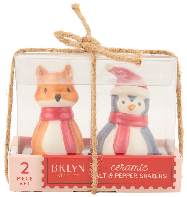 Bklyn 2 Pc Christmas Fox Penguin Salt & Pepper Shakers