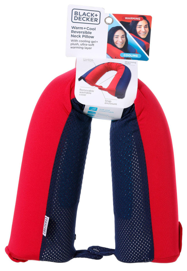 Relieve neck tension anytime with the Black & Decker Warm + Cool Reversible Neck Pillow. One side features a soothing, cooling gel while the other offers a plush, ultra soft warming layer for customizable comfort. Designed for everyday use at home or on the go.