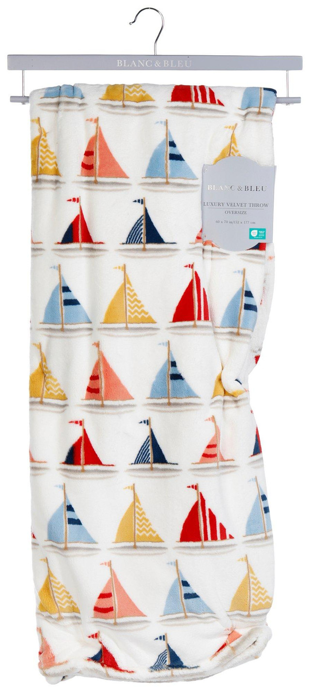 Bring coastal charm to your space with this oversized luxury throw blanket, featuring a nautical theme displaying rows of different sailboats. Made from 100% polyester, it offers soft, cozy comfort and is machine washable and tumble dry safe for effortless everyday use. Measures approximately 60 in x 70 in.