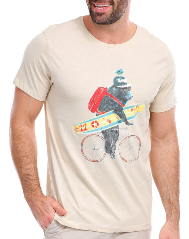 Ride the waves of style with the Surfing Bear Graphic Tee. Crafted from soft cotton, this tee features a whimsical bear surfing graphic that adds a fun touch to your casual wardrobe. Perfect for relaxed days or beach outings, it pairs effortlessly with jeans, shorts, and more.