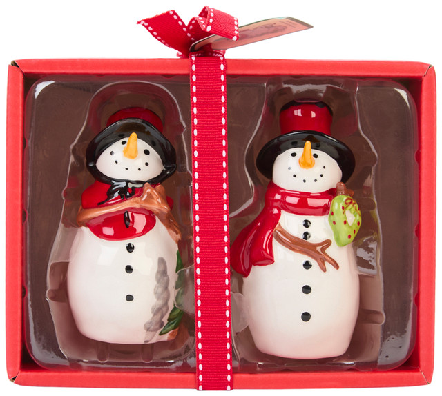 Add festive charm to your holiday table with the 2 Piece Christmas Snowman Salt and Pepper Shaker Set featuring hand crafted and hand painted ceramic snowmen. Perfect for seasonal dining or as a cheerful gift. Fabrication is 100% ceramic.