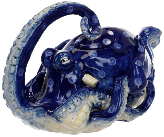 Brighten up tea time with the Blue Octopus Teapot, featuring a beautiful design of an octopus. Coastal inspired charm meets everyday function in this high quality ceramic piece, crafted for durability and easy handling. Perfect for serving tea or coffee, it adds an uplifting touch to kitchens, breakfast nooks or cozy afternoon breaks. Measures approximately 8 in x 11 in x 5.5 in.