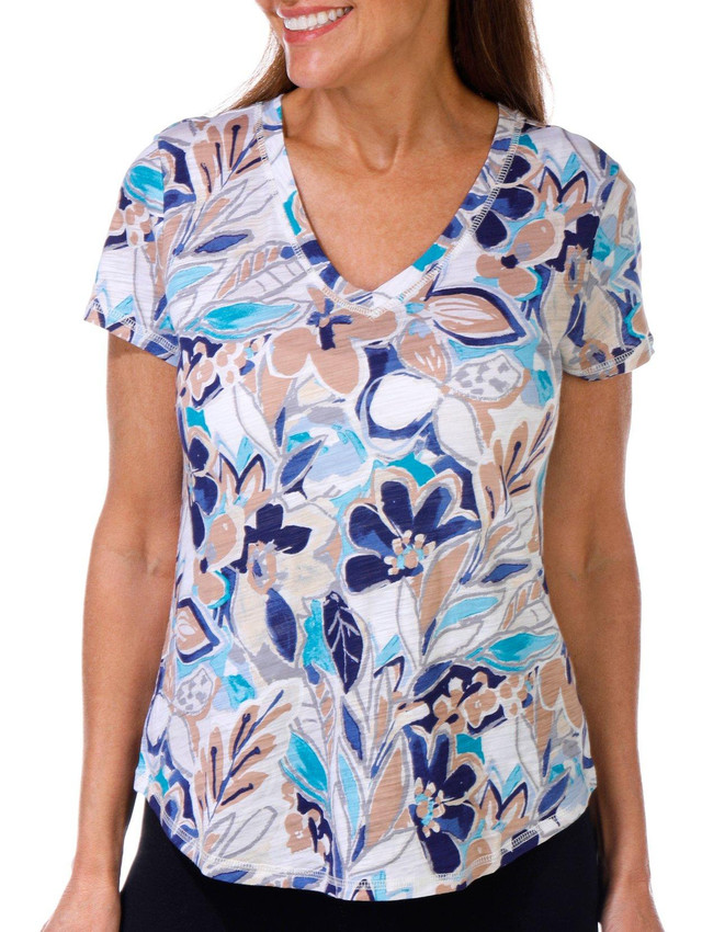 Introducing the Belize Floral Luxey Short Sleeve T-Shirt, where elegance meets comfort. This chic tee features a vibrant floral print that adds a touch of natures beauty to your wardrobe. The round neckline offers a classic look, while the soft, breathable fabric ensures all-day comfort. The top length measures approximately 23 in. Fabrication is 60% cotton and 40% modal.
