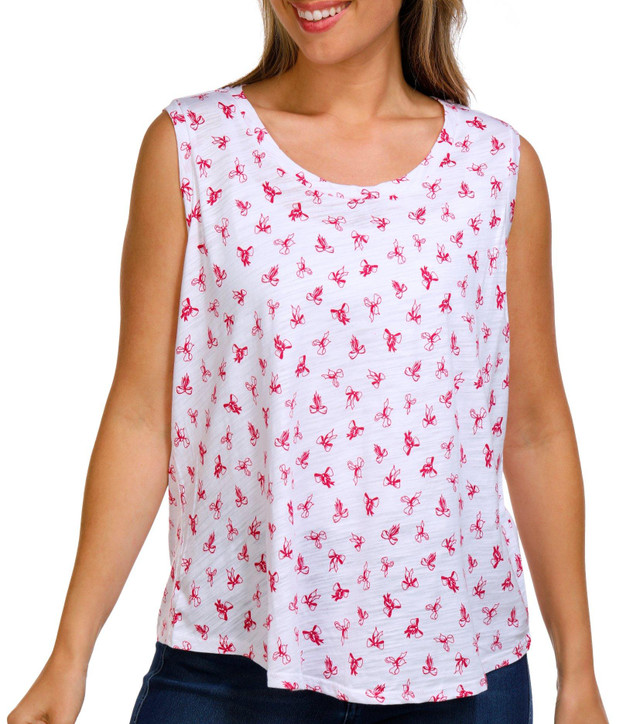 Introducing the Ditsy Bow Luxey Tank, a perfect blend of style and comfort. This tank top features a trendy bow print, a scoop neckline that adds a modern twist, making it a versatile piece for any occasion. Fabrication is 60% cotton, and 40% modal.