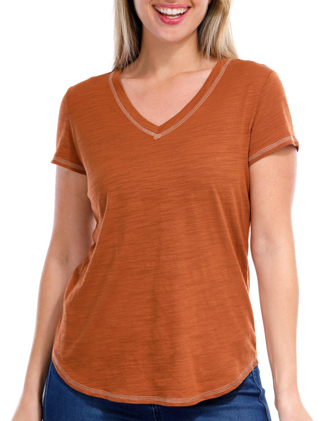 Introducing the Luxey Short Sleeve Tee by Blue Sol, where comfort meets style. This tee features a sophisticated heather design, enhanced by eye-catching accent-color stitching that adds a touch of flair. Crafted for versatility, its soft fabric ensures all-day comfort, making it perfect for any occasion. Elevate your wardrobe with this timeless piece that effortlessly blends casual elegance with modern trends. The top length measures approximately 22 in. Fabrication is 60% cotton, 40% modal.