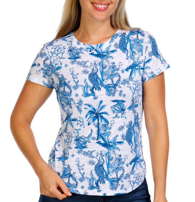 Stay stylish and comfortable in our Short Sleeve Print Luxey Scoop Top. Featuring a flattering scoop neckline and eye-catching prints, this soft, breathable top is perfect for everyday wear. Make this your go-to piece for effortless fashion and all-day comfort. Fabrication is 60% cotton, 40% modal
