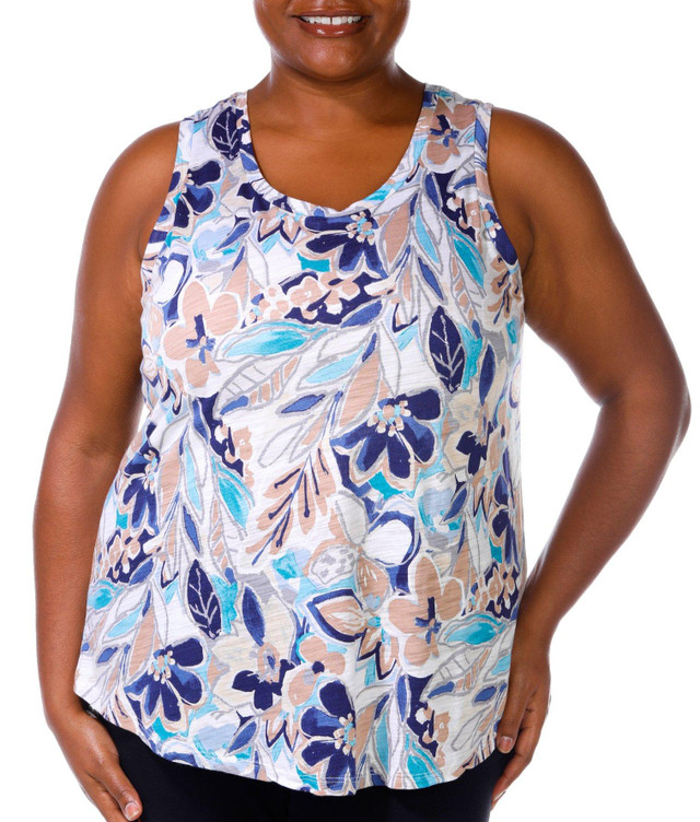 Introducing the Plus Luxey Printed Soft Belize Floral Scoop Tank Top, crafted from a luxurious blend of cotton and modal. This tank top features a vibrant multicolored cheetah print that adds a bold touch to your wardrobe. The round neckline offers a classic look, while the length provides a flattering fit. Perfect for layering or wearing on its own, this tank top combines comfort and style effortlessly. Fabrication is 60% cotton, 40% modal.