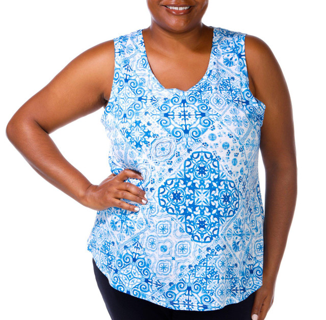 Introducing the Plus Luxey Printed Soft Patchwork Scoop Tank Top, crafted from a luxurious blend of cotton and modal. This tank top features a vibrant multicolored cheetah print that adds a bold touch to your wardrobe. The round neckline offers a classic look, while the length provides a flattering fit. Perfect for layering or wearing on its own, this tank top combines comfort and style effortlessly. Fabrication is 60% cotton, 40% modal.