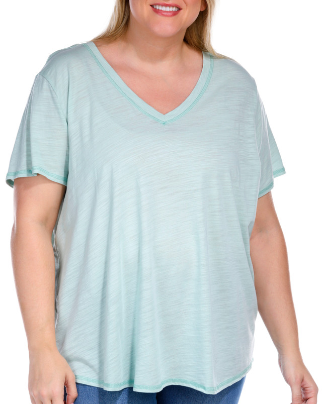 Blue Sol Plus Solid Luxey V- Neck Short Sleeve Top